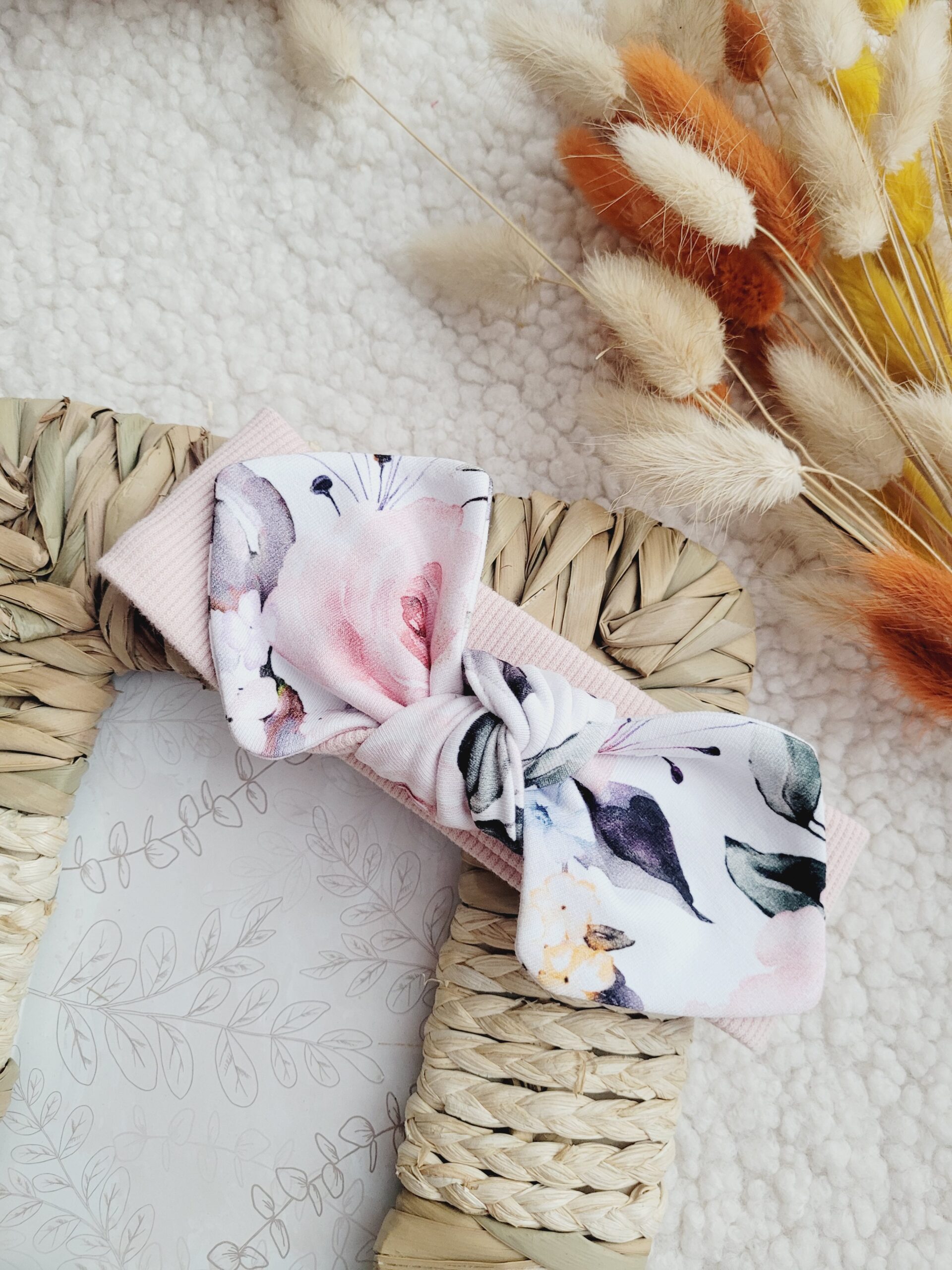 Nasza opaska prążkowana z kokardą pin-up we wzór pastelowych róż to idealny dodatek, który doda uroku każdej stylizacji Twojej dziewczynki. Uszyta z wysokiej jakości dzianiny prążkowanej w wybranym kolorze, doskonale pasuje do wielu elementów garderoby.