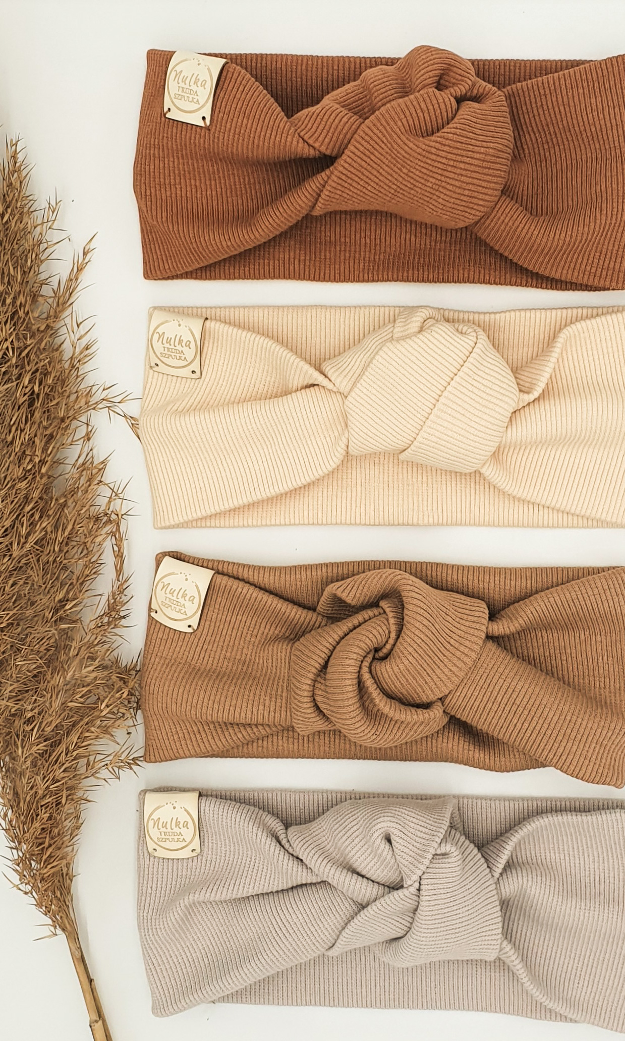 Opaska z supełkiem dla dziewczynki z dzianiny prążkowanej w wybranym kolorze.