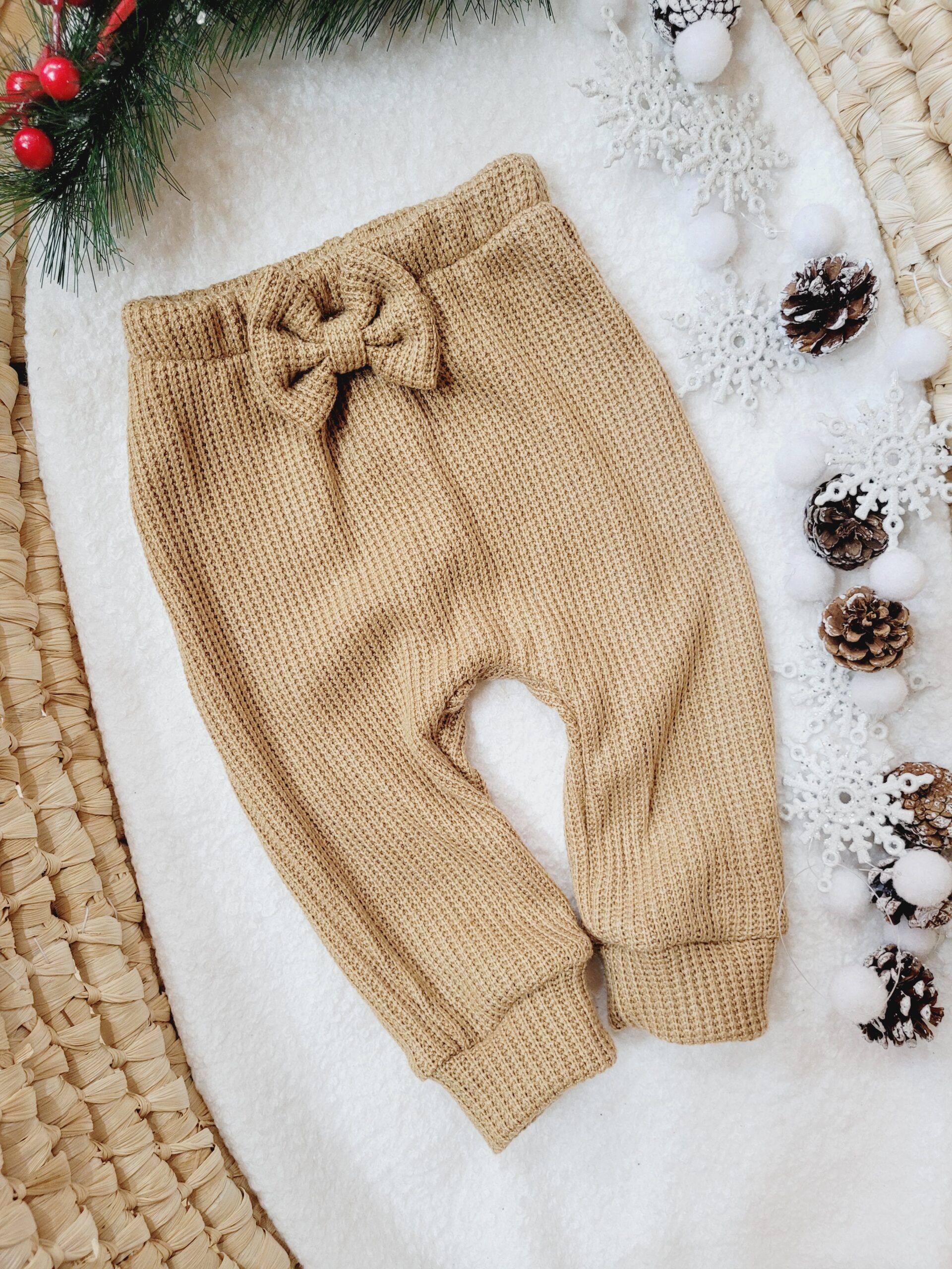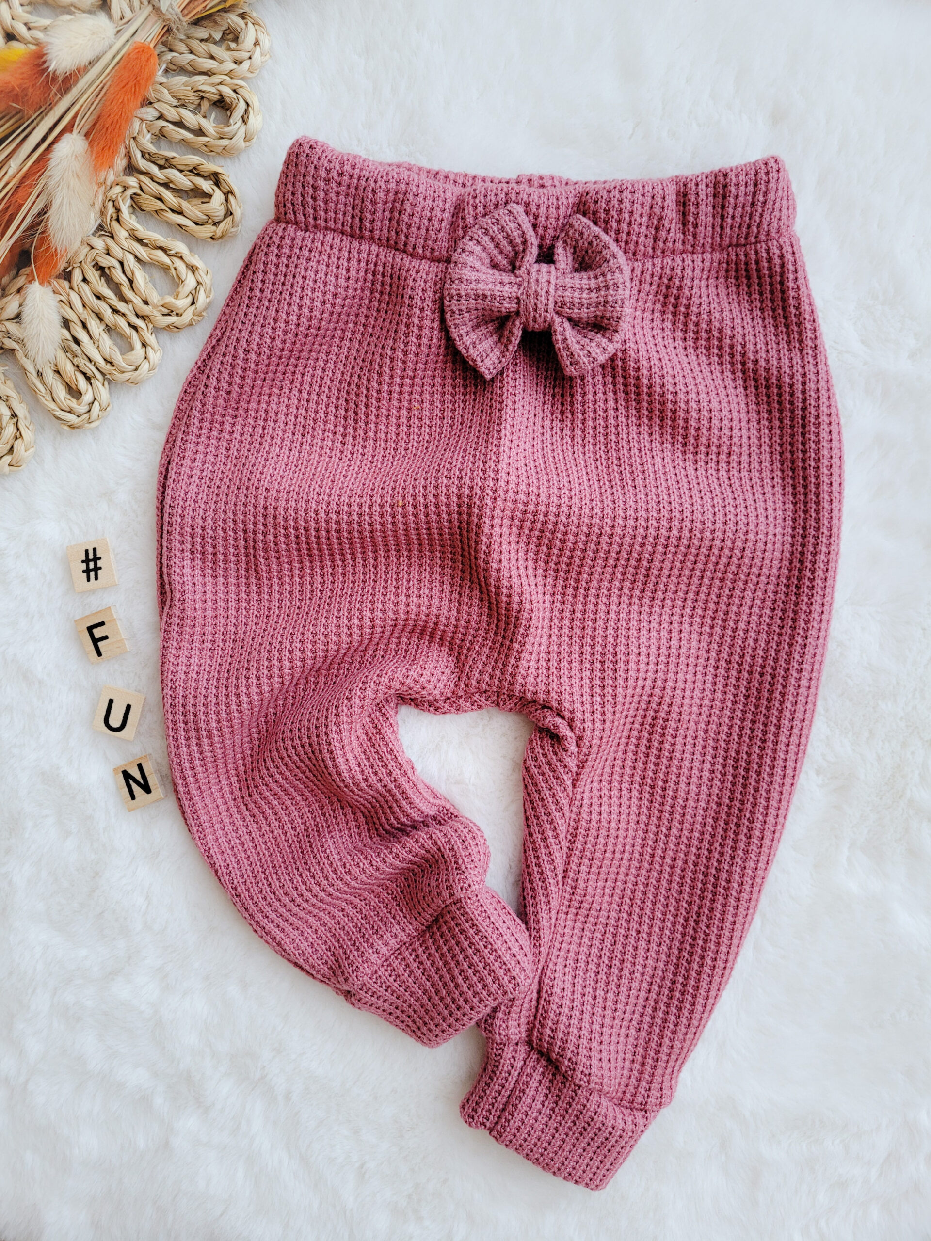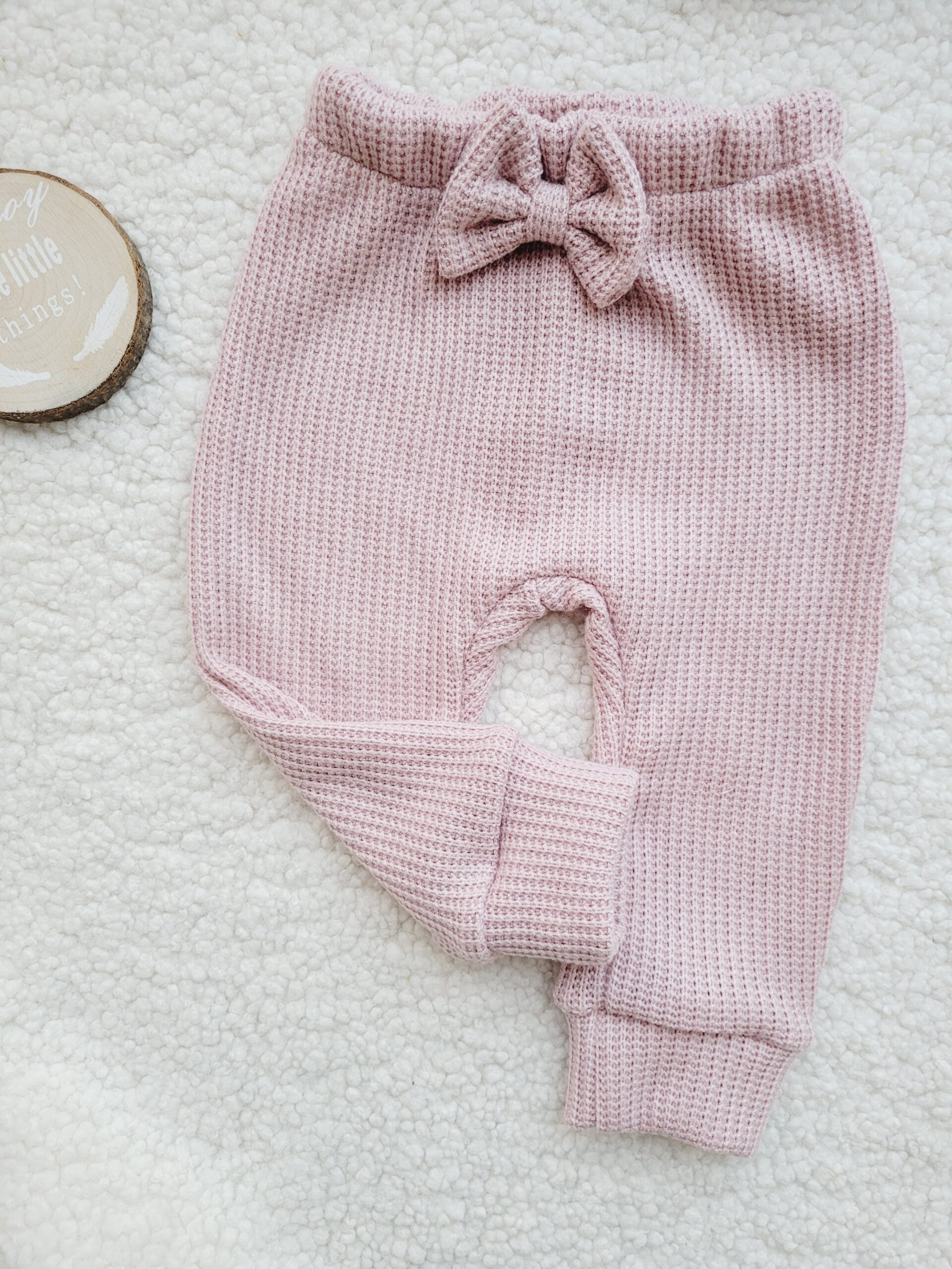 Spodnie z dzianiny sweterkowej z kokardką, różne kolory do wyboru. Rozmiary 56-122.