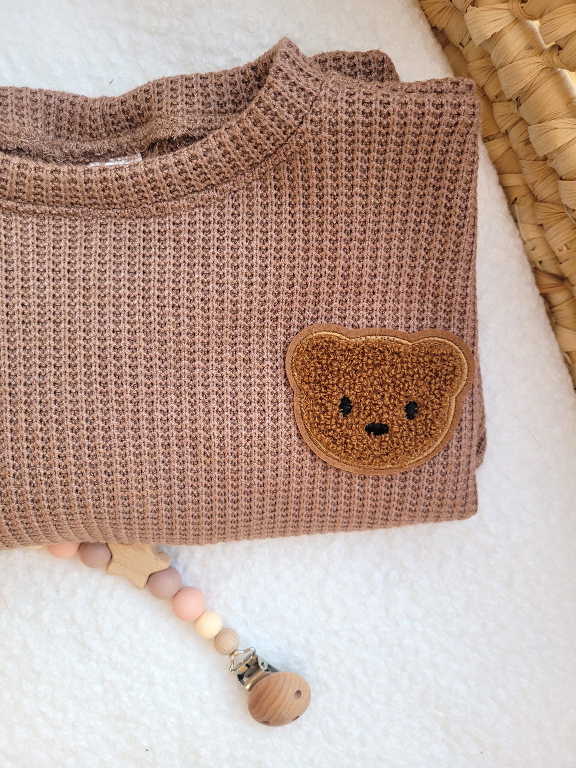 Sweterek dla dziecka z naszywką misia, rozmiary 56-122, różne kolory do wyboru.