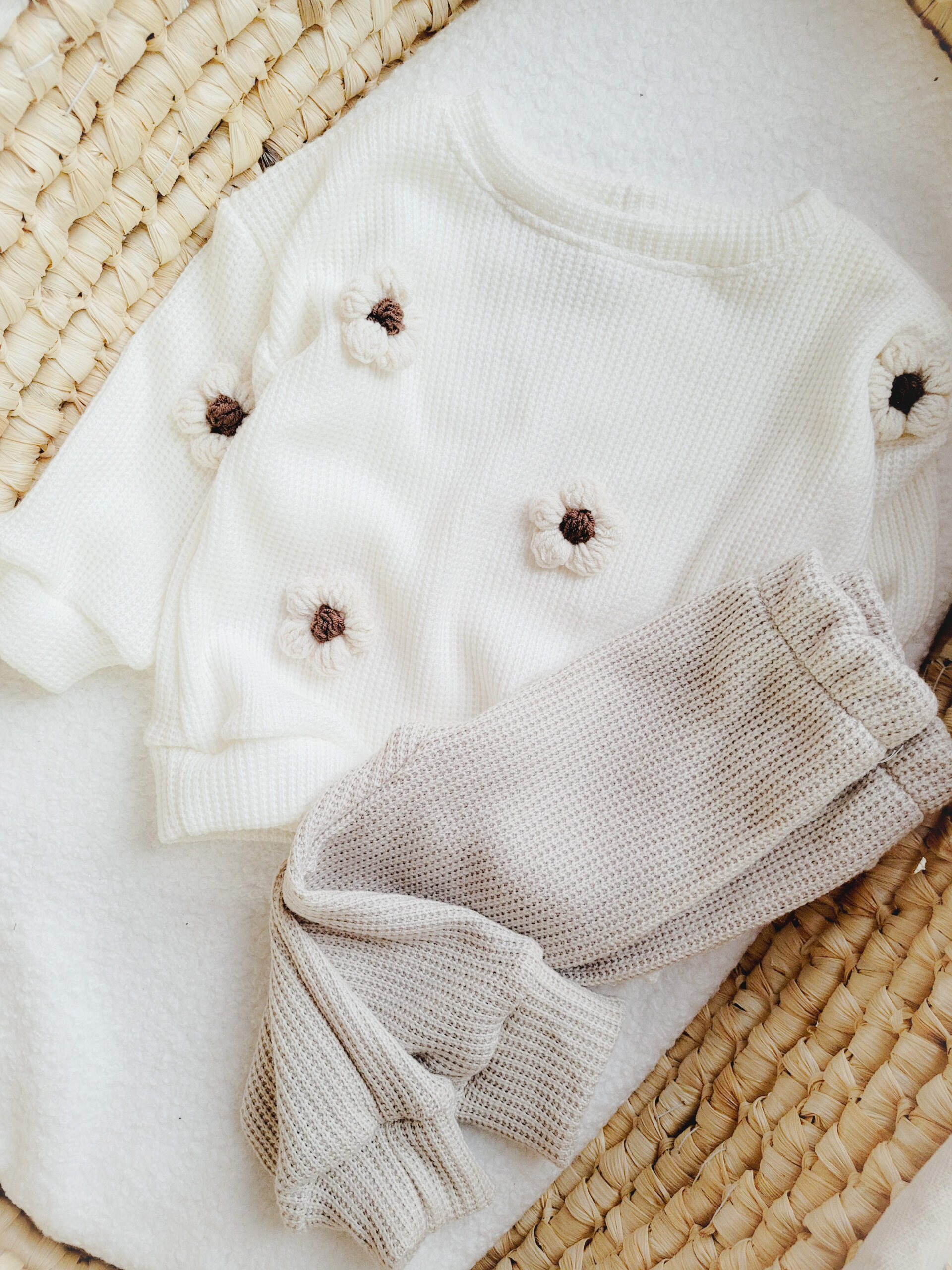 Sweterek dla dziewczynki z kwiatuszkami z włóczki, rozmiary 56-122.