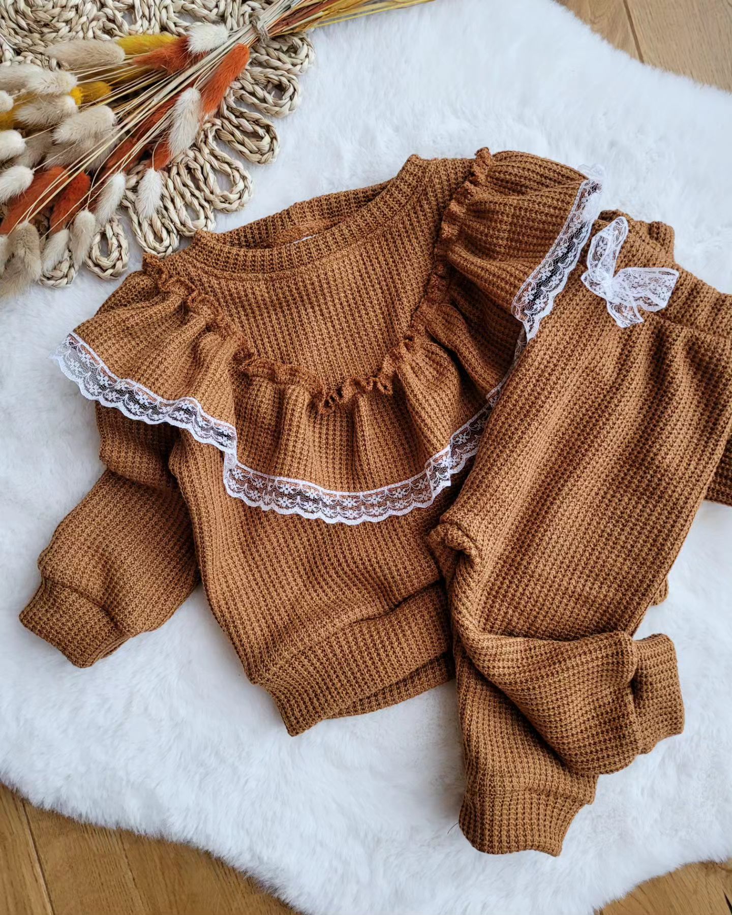 Sweterek z Falbanką dla Dziewczynki i Spodnie – Różne Kolory