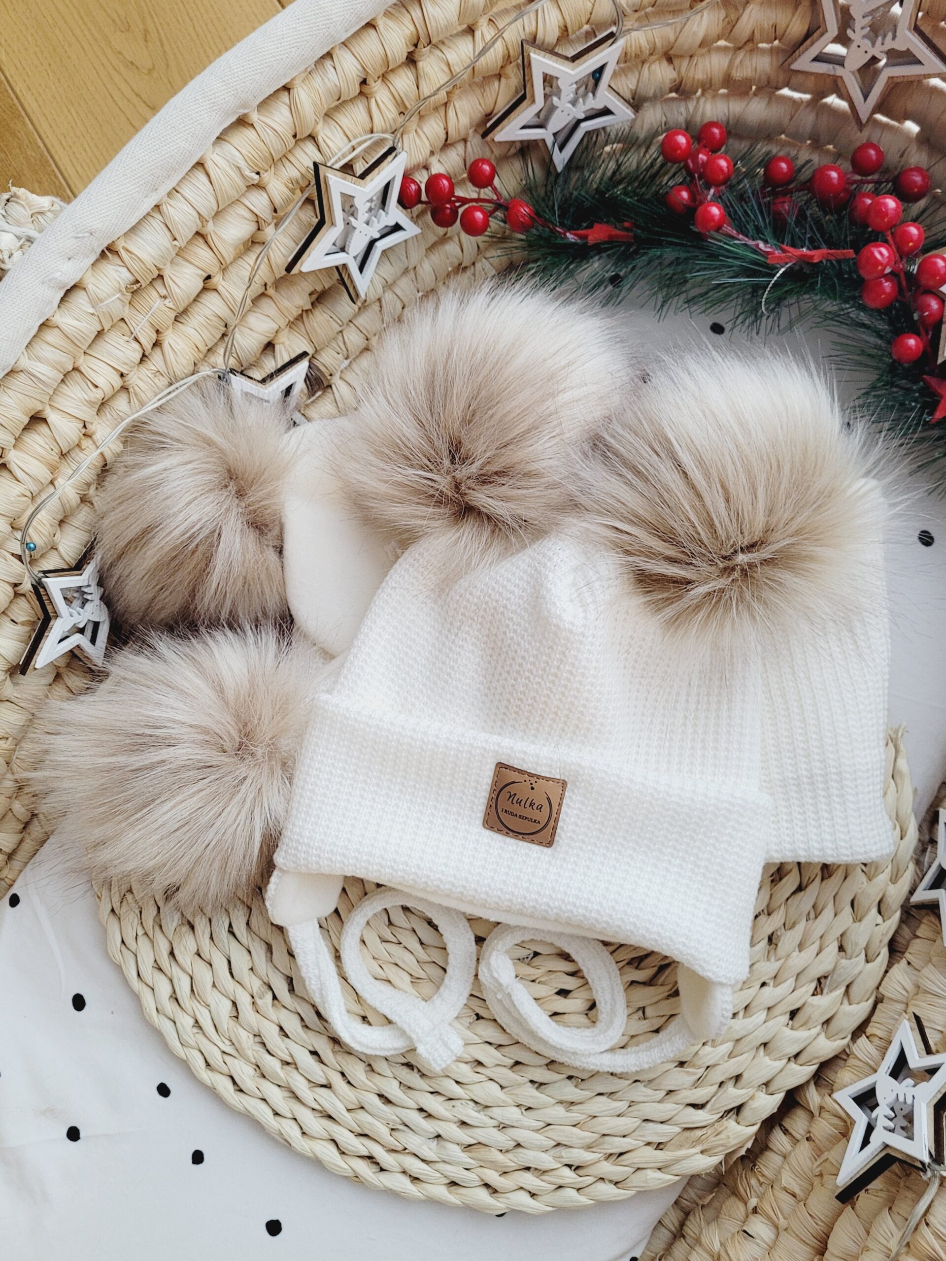 - Czapki z jednym lub dwoma pomponami, a dla najmłodszych – wiązane modele z misiowymi uszkami.