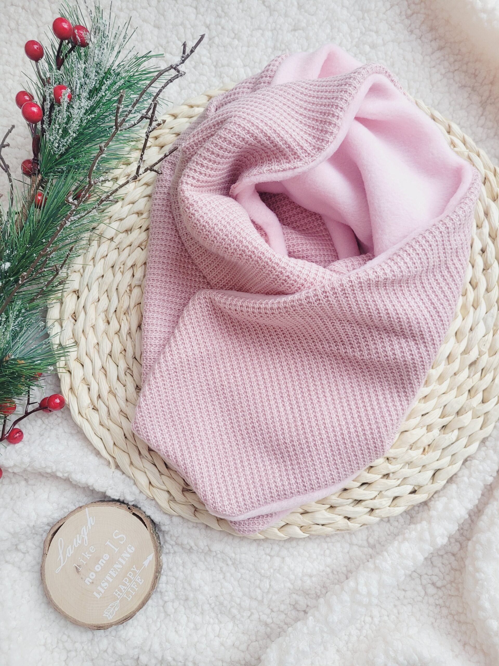 Szalik jest idealnym wyborem dla dziewczynki. Piękny odcień pastelowego różu łatwo zestawisz z różnymi odcieniami zimowych kurtek i innych akcesoriów.