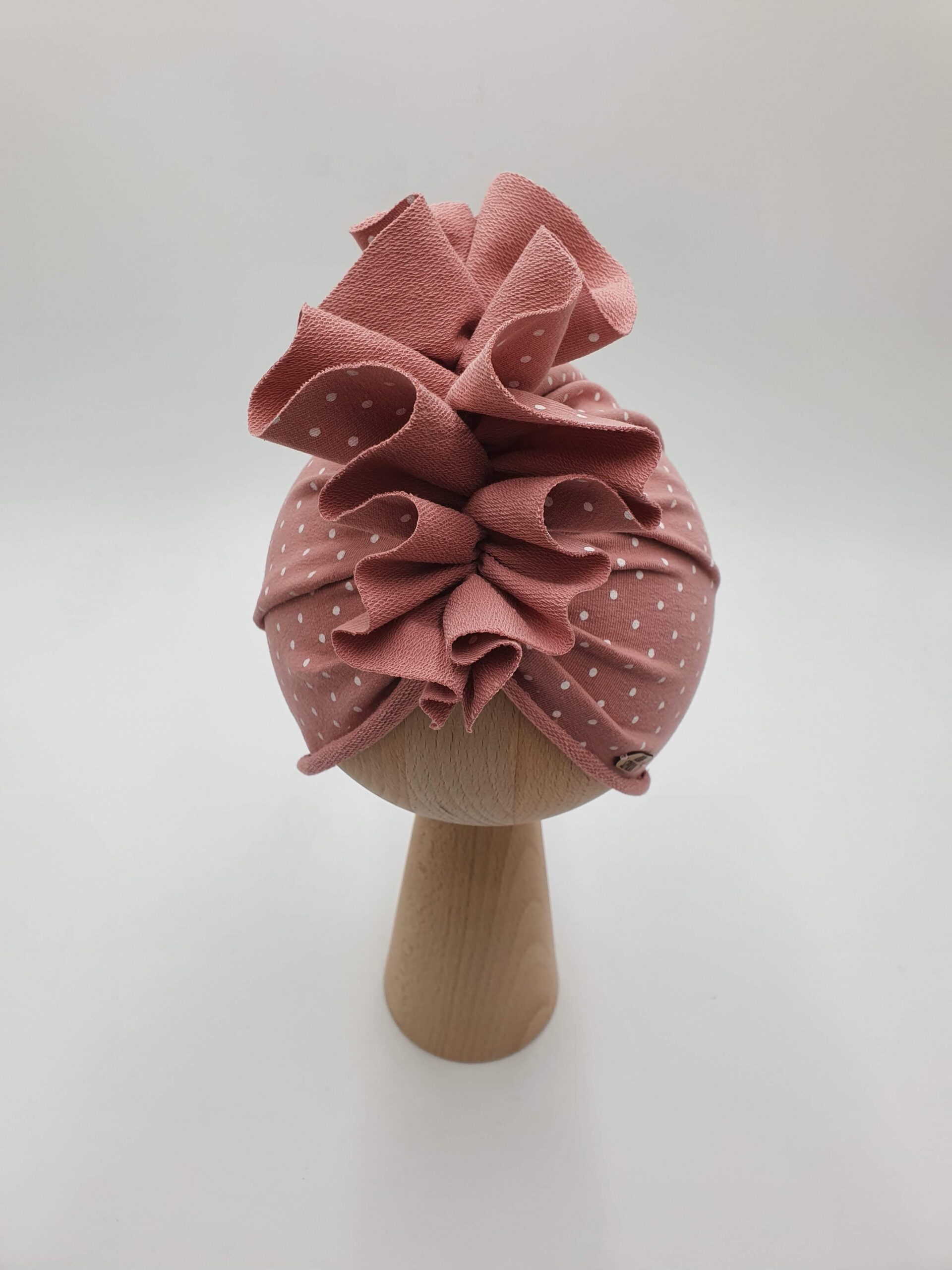 Turban jest oryginalnym nakryciem głowy w każdym wieku. Do wyboru masz klasyczną falbankę, kokardkę w stylu pin-up lub kwiat. Delikatny biały maczek na pastelowym lub brudnym różu prezentuje się przepięknie. Możesz wybrać również intensywną czerwień, delikatną miętę czy lawendę, fuksję, róż lub klasyczny granat. Turban wykonany może być z jednej warstwy dzianiny lub grubszy z dwóch warstw. Nasze turbany szyte są w całości ręcznie. Do kompletu możesz dobrać komin, chustę pod szyję a nawet opaskę czy czapkę.