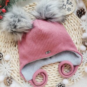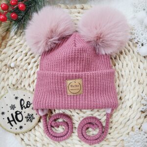 Czapka wiązana dla dziewczynki w kolorze róż wrzosowy z jednym lub dwoma pomponami do wyboru. Rozmiary 36-52.