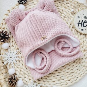 Piękna wiązana czapka z misiowymi uszkami podszyta polarem. Różne kolory dzianiny do wyboru.