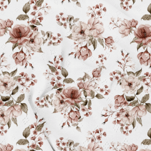 Komplet dla dziewczynki z jedną kokardką i chustą z falbanką. Wzór Pastelowe Róże.