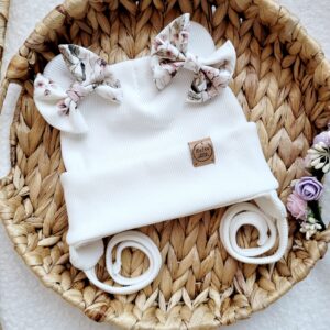 Czapka z uszkami i kokardkami perełki z chustą Peony – kolory