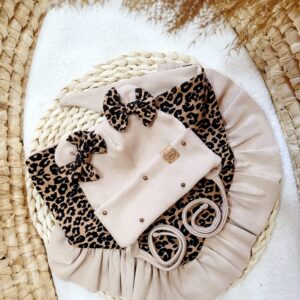 Komplet dla dziewczynki w wybranym kolorze połączony z pięknym printem w panterkę.